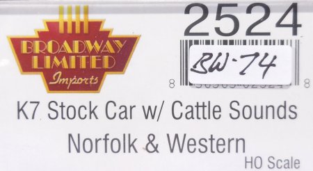 | Code BW-74: Broadway # 2524, N&W, K7 Stock Car w/Cattle Sound, new, Sale sFr. 50.- consignment - sold out 11/25 |
