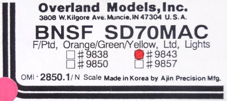 # 2850.1, BNSF, SD70MAC, # 9843, F/P, '98-run, sFr.
