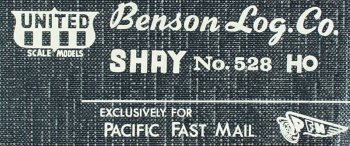 HO Scale: PFM/United, 2-Truck Shay, Benson Logging, U/P, '82-run, WG-146,