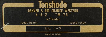 | HO Scale: Tenshodo # 169, D&RGW, 4-8-2 M-75, F/P, 1975-run, FM-48, sFr. 550.- consignment |