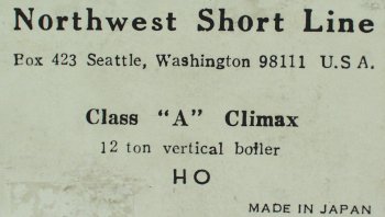 | HO Scale: NWSL, Climax Class A, 12-Ton, Vertical Boiler, U/P, runs well, HJF-1367, sFr. 335.- consignment |