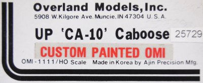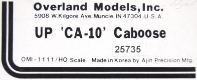 | HO Scale: Overland # 1111, UP, CA-10 Caboose, F/P, P-459, sFr. 200.- consignment - sold out 2/19 |