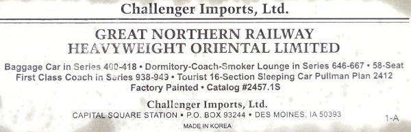 | Code HJF-2020: HO Scale: Challenger # 2457.1S, 4-Car Set 1-A, HW Passenger Set, F/P, 03-run |