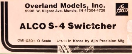 | Code ML-03: O Scale: OMI # 0301, LV, Alco S-4 Switcher, C/P, '85-run, sFr. 600.- consignment |