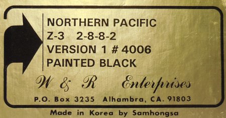 | Code RLO-58: HO Scale: W&R, NP, 2-8-8-2, Z-3, F/P #4006, w/lights, '96-run, sFr. 1300.- consignment |