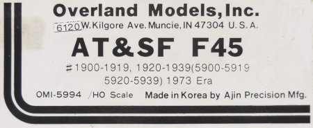 | Code GS-79: HO Scale: OMI # 5994, AT&SF, EMD F45, F/P #1925, solid blue, lights, '91-run, sFr. 400.- consignment |