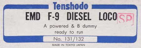 | Tenshodo # 131/132, SP-Daylight, F9A/B, A = pow. B = dummy, 1963-run (no Box) |