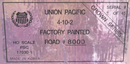 | Code GS-113: HO Scale: PSC Crown # 17030-1, UP, 4-10-2, F/P #8000, lights (9 of 45), '97-run, sFr. 750.- consignment |