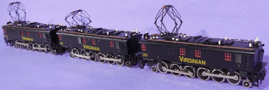 | Code GS-124: HO Scale: Alco # E-125, Virginian, EL-3A, Jack Shaft 3-unit set, 3 x pow. '78-run, sFr. 950.- consignment |