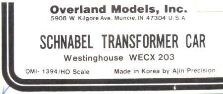 | Code GS-125: HO Scale: OMI # 1394, WECX, Schnable Car w/Transformer, F/P, '85-run, sFr. 950.- consignment |