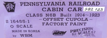 | Code RG-91: O Scale: PSC # 16455-1, PRR, N6B Caboose, F/P #982123, '89-run, sFr. 250.- consignment |