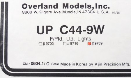 | Code RG-102: O Scale: OMI # 0604.1, UP, GE C44-9W #9739, F/P, lights, 12/97-run (7 of 37), sFr. 975.- consignment |