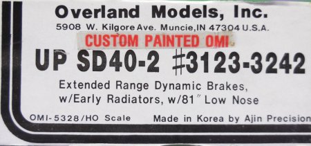 | Code GS-114: HO Scale: OMI # 5328, UP, SD40-2, F/P #3125, '90-run, sFr. 325.- consignment |