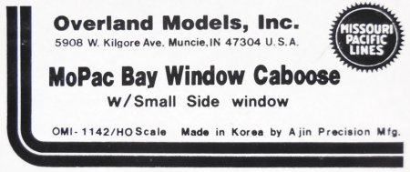 | Code BW-77: HO Scale: OMI # 1142, MoPac, Bay Window Caboose, F/P #13048, '88-run, sFr. 225.- consignment |