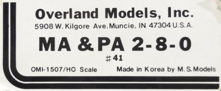 | Code RLO-73: HO Scale: Overland # 1507, Ma & Pa, 2-8-0, U/P, '89-run, sFr. 295.- consignment |