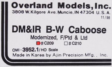 | Code ZA-1: HO Scale: OMI # 3952.1, DM&IR, BW Caboose, F/P, 11/98-run, sFr. 250.- consignment |